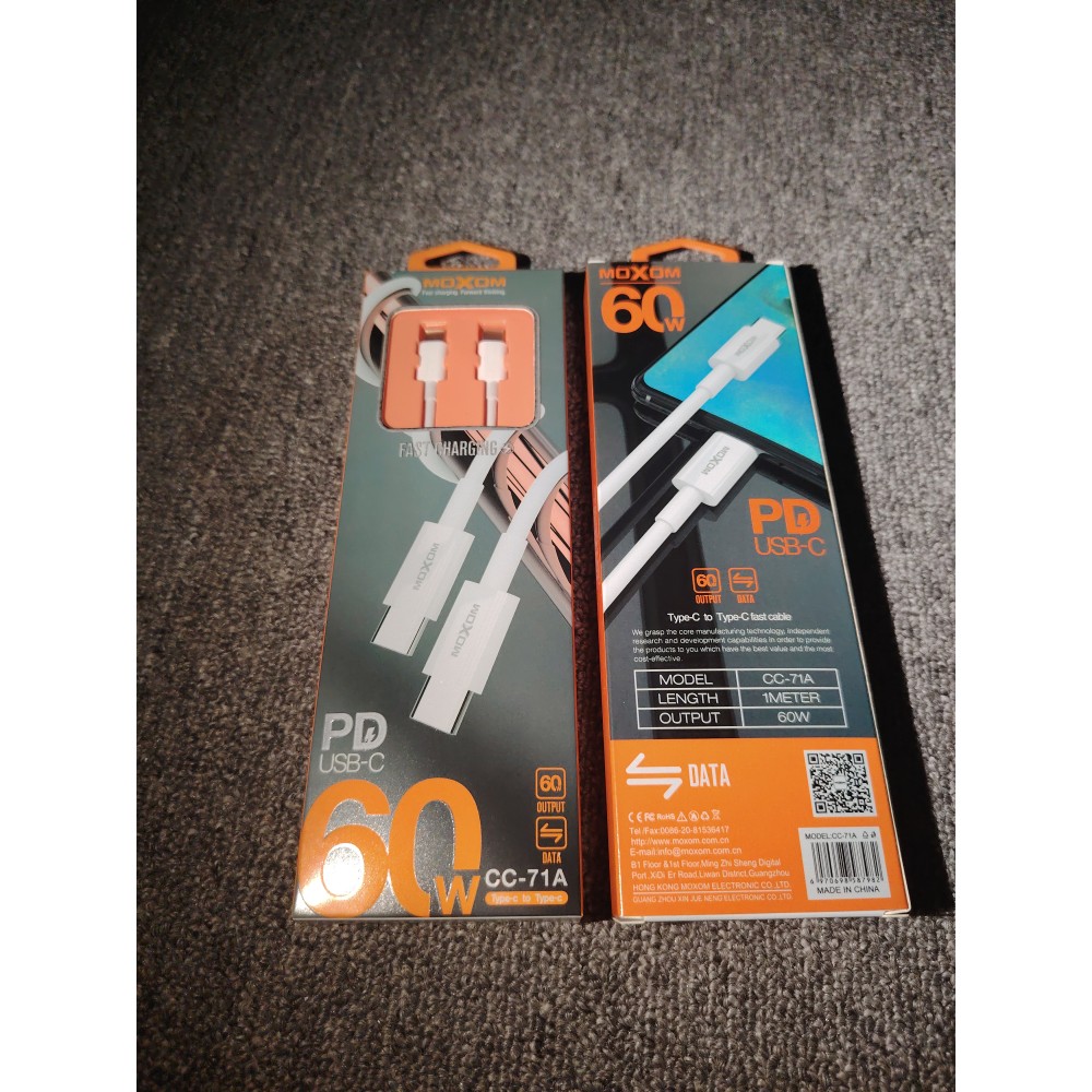 型号: MOXOM PD USB-C 60W CC-71A TYPE-C TO TYPE-C 数据线